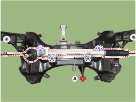 Снимите рулевой редуктор (А) с переднего подрамника, ослабив