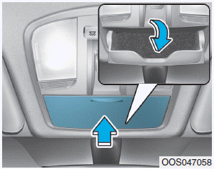 Нажмите на крышку, и держатель медленно откроется. Поместите солнцезащитные очки в дверь отсека линзами наружу.