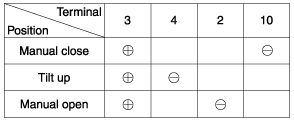 Заземлите клеммы, как показано в таблице ниже, и убедитесь, что люк в крыше