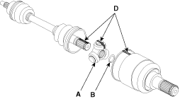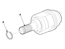 Снимите стопорное кольцо корпуса (В) со шлица приводного вала (А).