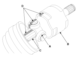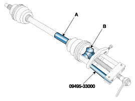 Снимите узел крестовины (B) с приводного вала (A), используя специальный
