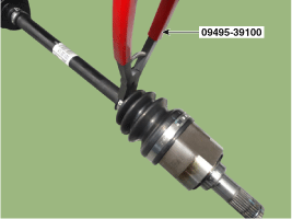 Используя SST (09495-39100) и плоскогубцы с длинными губками, закрепите пыльник TJ.