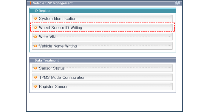 Выберите «модель автомобиля» и «TPMS» на экране выбора автомобиля GDS,