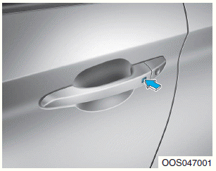 2. Либо нажмите кнопку дверной ручки, либо нажмите кнопку отпирания двери (2) на умный ключ.