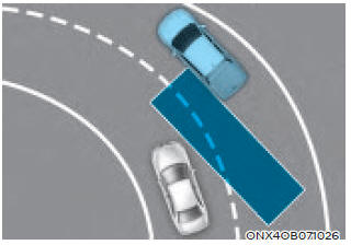 Предотвращение столкновений в слепых зонах Ассистент может работать неправильно при движении по криволинейной дороге. Чай функция может не обнаружить автомобиль в соседней полосе.