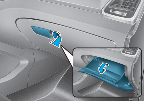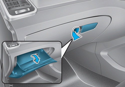 Потяните за ручку, чтобы автоматически открыть перчаточный ящик. Замолчи перчаточный ящик после использования.
