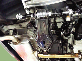 Ослабьте крепежную гайку и болт, затем отделите амортизатор