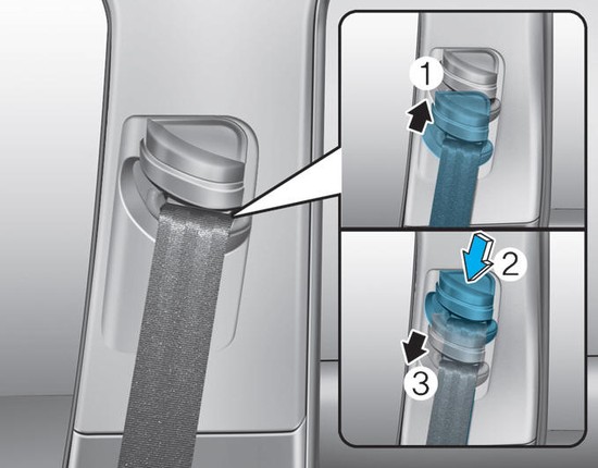 Чтобы отрегулировать высоту точки крепления ремня безопасности, поднимите или опустите точку привязки в нужное положение.