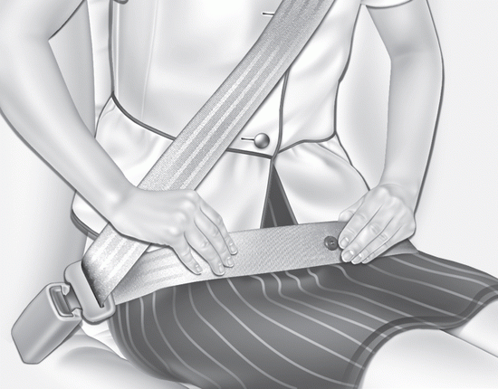 Длина ремня безопасности регулируется автоматически один раз вы вручную отрегулировали поясной ремень так, чтобы он плотно прилегал против ваших бедер.
