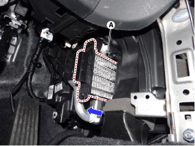 ЗАМЕНА 1. Отсоедините отрицательную (-) клемму аккумуляторной батареи. 2. Снимите нагреватель и блок вентилятора. (Отчет...