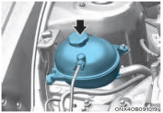 Если уровень охлаждающей жидкости низкий, добавьте достаточно дистиллированная (деионизированная) вода для приведения уровень до отметки MAX, но не переполняйте. Если требуется частое добавление, см. авторизованный дилер HYUNDAI по охлаждению осмотр системы.