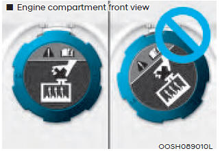 1. Убедитесь, что этикетка на крышке охлаждающей жидкости прямо впереди.