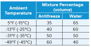 Если вы сомневаетесь в соотношении компонентов смеси, используйте 50% смесь воды и 50% антифриза проще всего смешать вместе, так как это будет одинаковое количество каждого. Подходит для использование для большинства температурных диапазонов -31°F (-35°С) и выше.