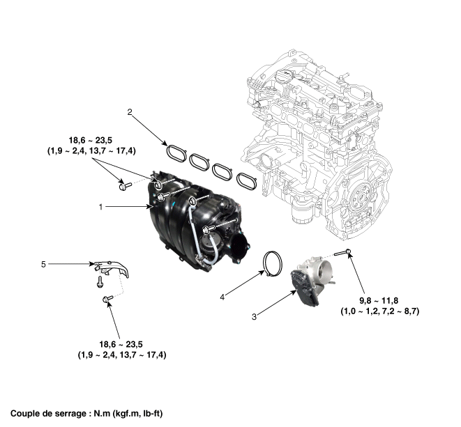 Ослабьте болты модуля ETC (управление электродвигателем дроссельной заслонки).