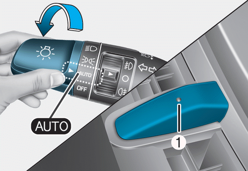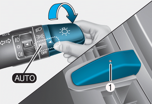 Когда переключатель освещения находится в положении AUTO, габаритные огни и фары ближнего света включаются или выключаются автоматически, в зависимости от уровня яркость вне автомобиля.