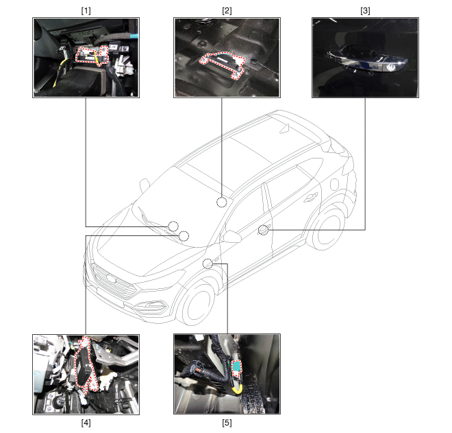 2. Комнатная антенна 2 3. Наружная дверная ручка/Дверная антенна |