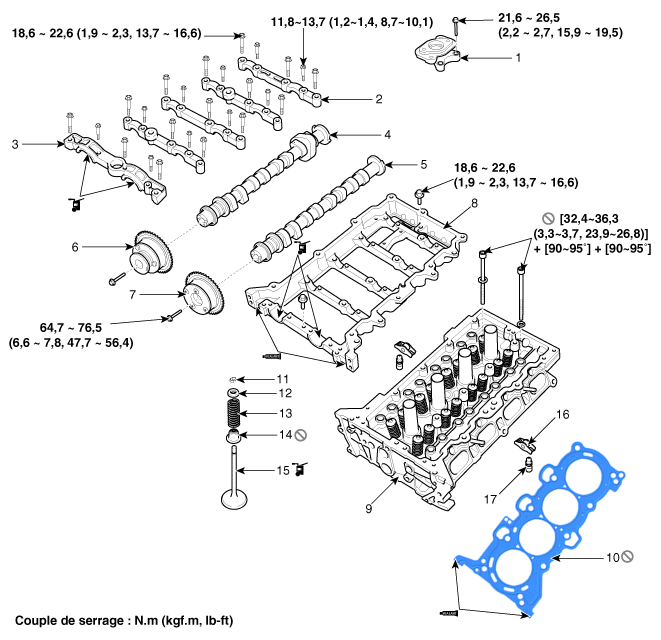 8. Держатель кулачка 9. Головка блока цилиндров 10. Прокладка ГБЦ 11. Стопорный замок 12. Удержание |