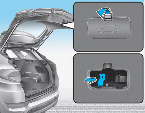 Ваш автомобиль оснащен механизмом аварийного открывания двери багажного отделения, расположенным в нижней части задней двери. Если кто-то застрял в багажнике случайно, следующая процедура позволяет открыть заднюю дверь: