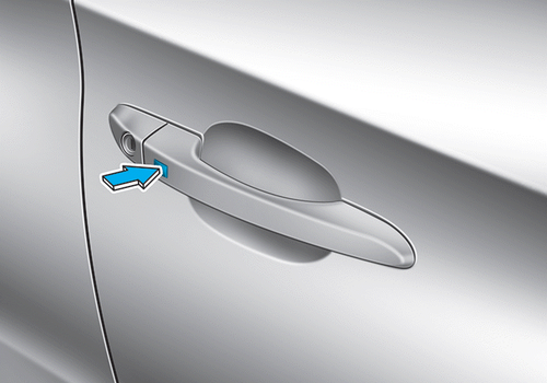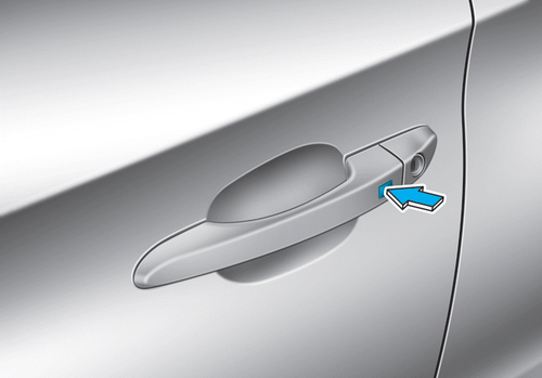 2.Нажмите кнопку на дверной ручке или кнопку разблокировки двери (2) смарт-ключа.