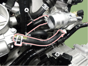 Отсоедините перепускной шланг (А) и шланг охлаждающей жидкости от