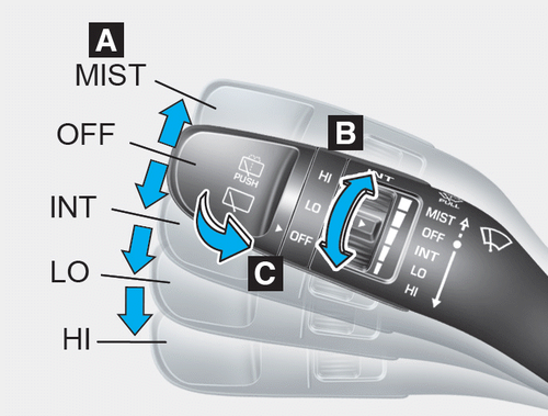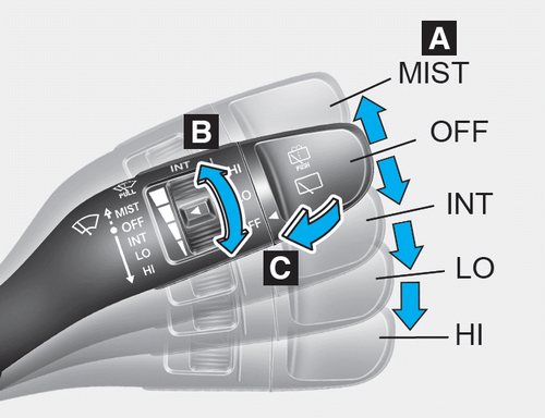 D: Рычаг управления стеклоочистителем/омывателем заднего стекла*