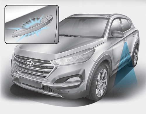 • Вы нажимаете кнопку отпирания двери на передатчике или на умный ключ.