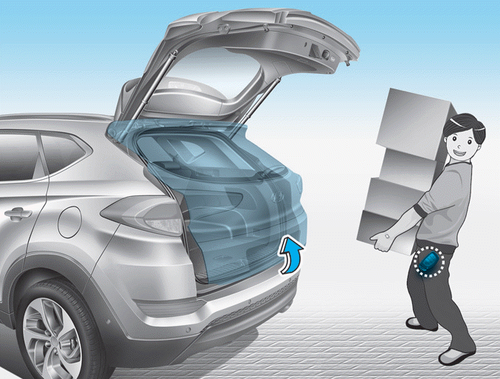 На автомобиле, оснащенном смарт-ключом, дверь багажного отделения можно открыть дистанционно. с помощью умной задней двери.