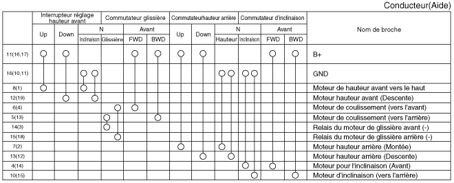 Когда переключатель сиденья с электроприводом находится в каждом положении, убедитесь, что