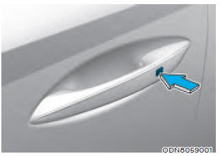 3. Либо нажмите кнопку дверной ручки, либо нажмите кнопку дверного замка (1) на умный ключ.