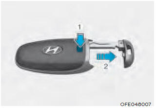 Чтобы вынуть механический ключ из смарт-ключ брелок: