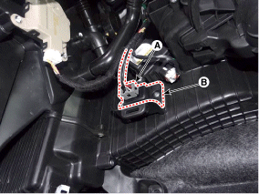 Отсоедините разъем мофсета (А), затем снимите электрический мофсет.
