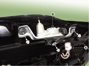мотор заднего стеклоочистителя (B) после ослабления болтов