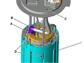 Снимите двигатель топливного насоса (C) с топливного фильтра.