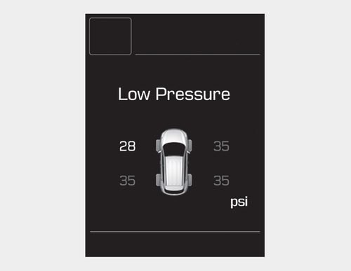 • Это сообщение отображается, если давление в шинах низкое, когда кнопка давления в шинах нажата. Старт/стоп двигателя находится в положении ON.