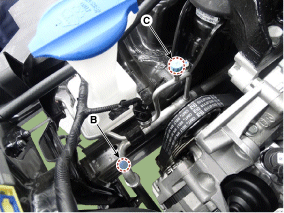 сервисный порт высокого давления (B) и сервисный порт низкого давления (C), как показано на рисунке,