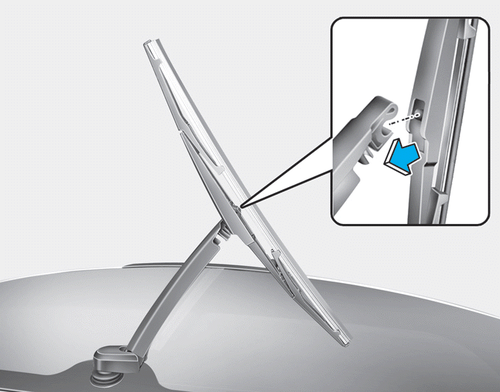 Во избежание повреждения рычагов стеклоочистителя или других компонентов, мы советуем вам заменить нож у дилера HYUNDAI одобренный.