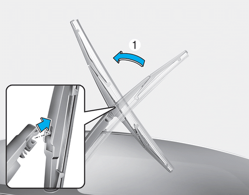 2. Установите новую метлу, вставив центральную часть в паз рычага стеклоочистителя, пока не услышите щелчок, указывающий на то, что он находится в позиция.