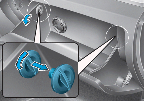 1. Откройте перчаточный ящик и снимите два боковых упора.