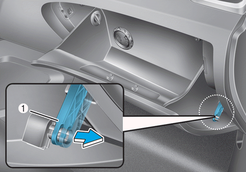 2.Снимите панель перчаточного ящика и поддерживающий ремень (1).