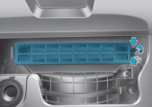 3. Снимите корпус воздушного фильтра кондиционера, одновременно нажимая замок, расположенный с правой стороны крышки.