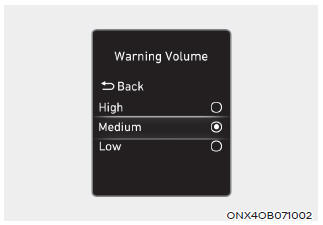 Если вы измените Громкость предупреждения, Громкость предупреждения другого водителя Системы поддержки могут измениться.