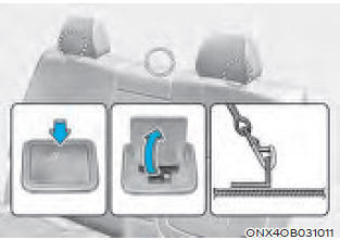 Держатели крючков для детских удерживающих устройств расположены на задней части спинок сидений.