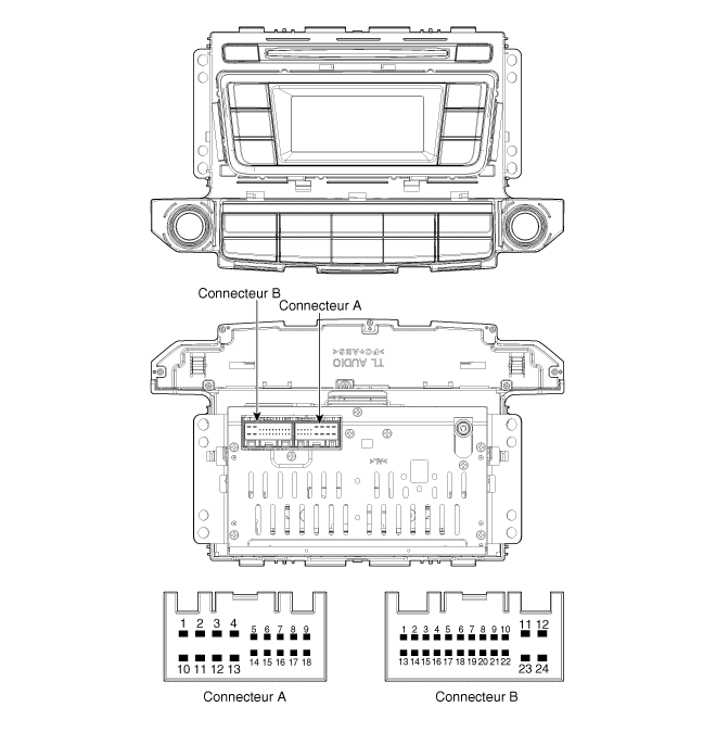 Снимите аудиоблок (А) после ослабления винтов.
