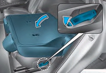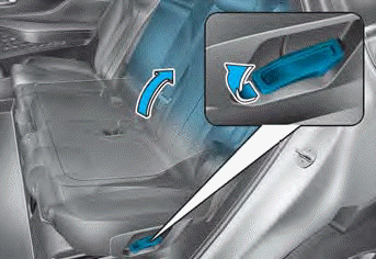 4. Потяните за рычаг складывания спинки сиденья (сиденье 2-го ряда), затем сложите сиденье в направлении передняя часть автомобиля. Когда вы вернете спинку сиденья в вертикальное положение, всегда проверяйте, чтобы он зафиксировался, нажав на верхнюю часть спинки сиденья.