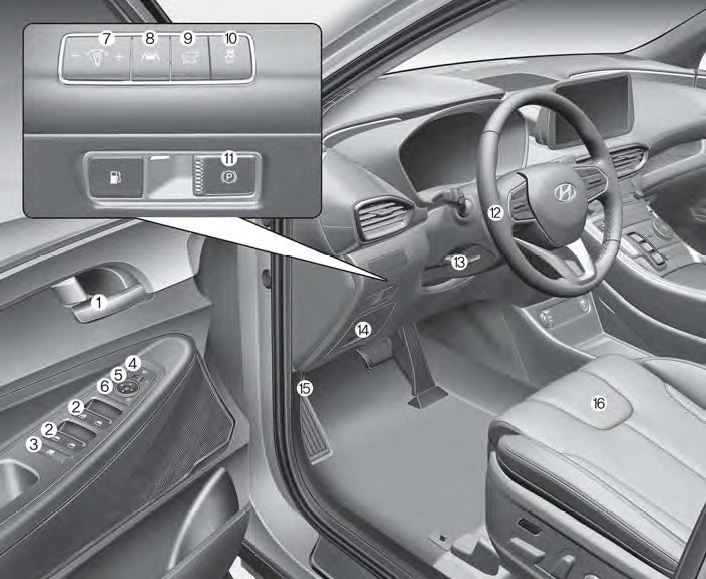 3. Кнопка блокировки стеклоподъемников/кнопка электронной блокировки для безопасности детей