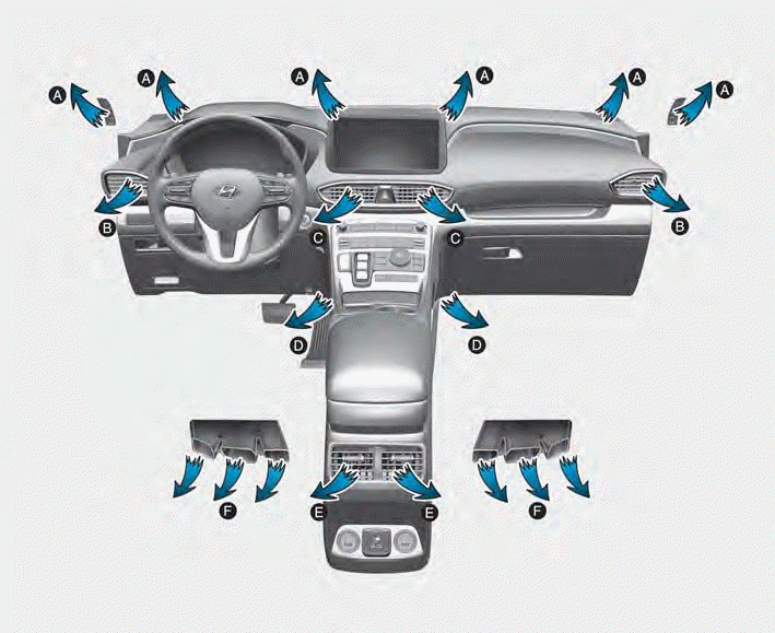 Поток воздуха направлен на верхнюю часть тела и лицо. Кроме того, каждая розетка можно контролировать, чтобы направить воздух, выходящий из выпускного отверстия.
