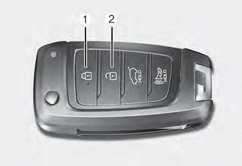 Чтобы отпереть двери, нажмите кнопку отпирания дверей (2) на дистанционном ключе.