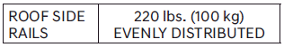 указанный предельный вес на боковых рейлингах крыши может привести к повреждению вашего автомобиля.