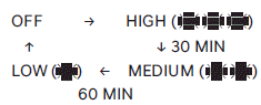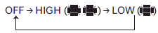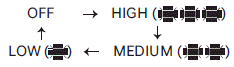 Каждый раз, когда вы нажимаете переключатель, настройка температуры сиденья изменяется. следующее: