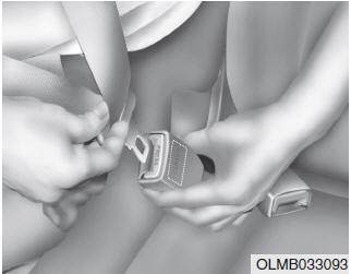 При использовании центрального ремня заднего сиденья необходимо заблокировать все металлические язычки и пряжки. Если какой-либо металлический язычок или пряжка не заблокированы, это увеличивает вероятность получения травмы. в случае столкновения.